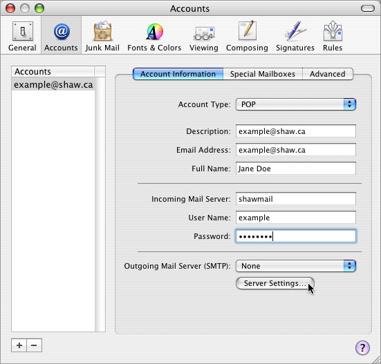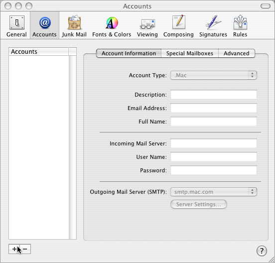 To send and receive email with your new address, you’ll need to enter some basic information into your email program. If you use the Mac OS X v10.3 Mail program, please open it, then follow the steps below.