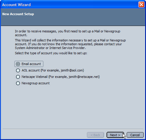 - Click Email account. Click Next.