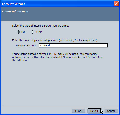 - In the Server Name box, type in smtp.<enteryourfulldomainname> or if you are using your ISPs outgoing e-mail server then a name from the list below (i.e. mail.telus.net):