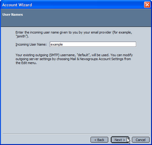 - In the Incoming User Name box, type in the user name assigned to you (usually your complete email address including domain name).